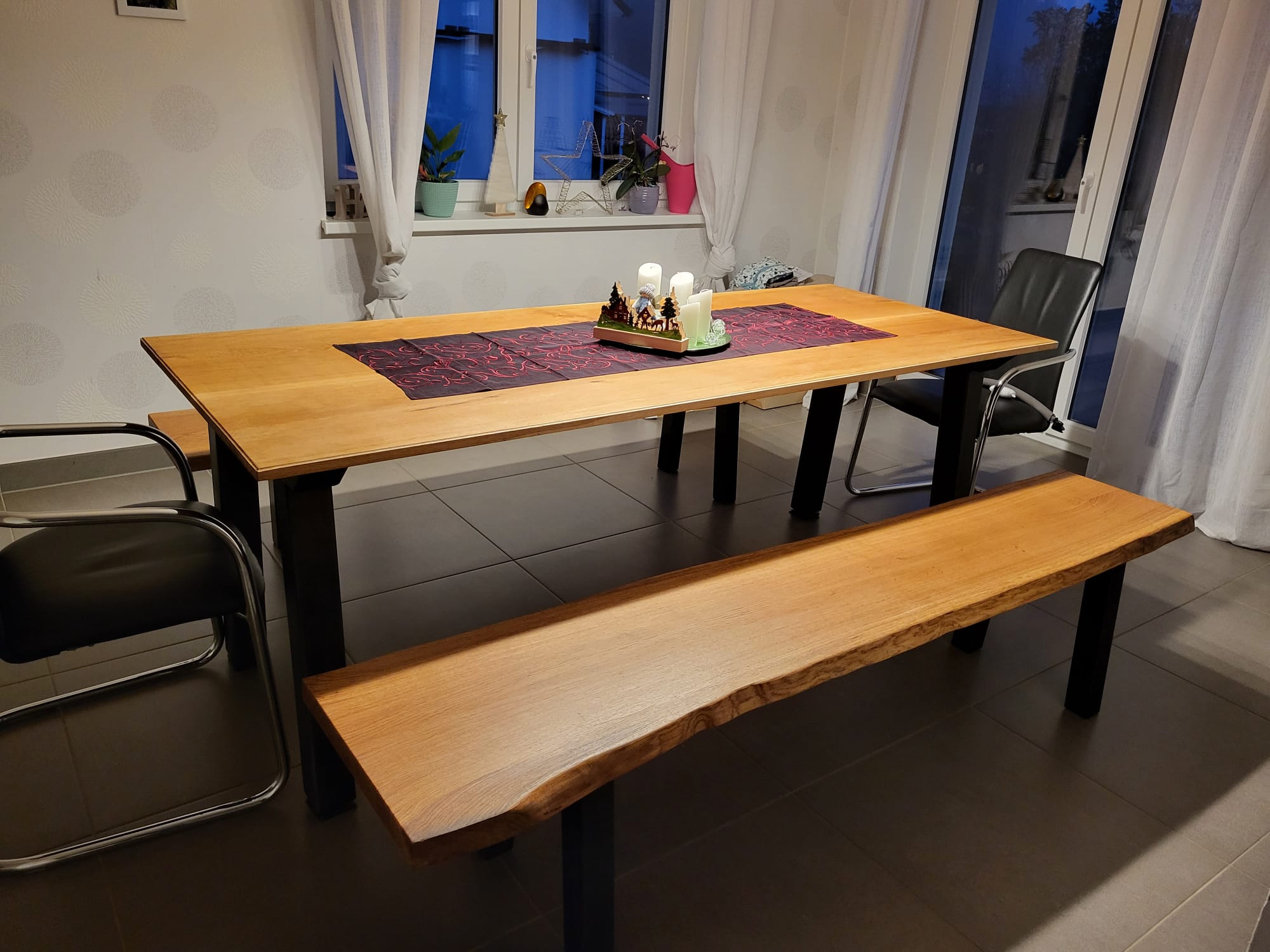 Wir entwerfen und fertigen individuelle Tische, Bänke und Regale nach Ihren Vorstellungen – mit klaren Linien,